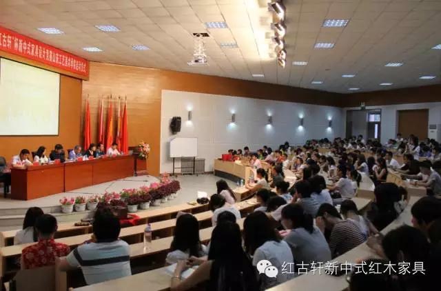 紅木家具技術(shù)專家曹新民先生、《家具與室內(nèi)裝飾》執(zhí)行主編王周先生、紅古軒總經(jīng)理助理兼營(yíng)銷總監(jiān)楊晶女士等齊聚一堂,與眾多師生學(xué)子,共聚山東工藝美術(shù)學(xué)院,揮斥方遒,共挖新中式魅力,共享新中式盛宴。
