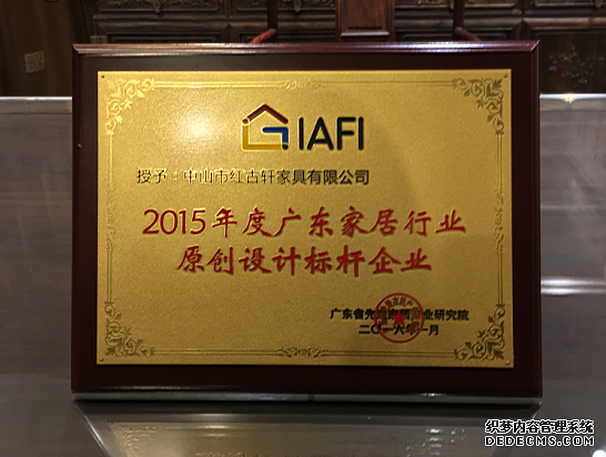 會(huì)上,活動(dòng)主辦方廣東省先進(jìn)家居產(chǎn)業(yè)研究院,特別為廣東省家居行業(yè)在原創(chuàng)設(shè)計(jì)、管理進(jìn)步、科技進(jìn)步等方面表現(xiàn)突出的企業(yè)進(jìn)行了頒獎(jiǎng)。新中式紅木家具第一品牌,紅古軒以在新中式紅木的卓越表現(xiàn),被評(píng)為“廣東家居行業(yè)原創(chuàng)設(shè)計(jì)標(biāo)桿企業(yè)”,紅古軒已連續(xù)兩年獲此殊榮。頒獎(jiǎng)銀屏前,紅古軒副總經(jīng)理李春江先生上臺(tái)接受頒獎(jiǎng),中國家具協(xié)會(huì)副理事長的領(lǐng)導(dǎo)將象征榮譽(yù)與標(biāo)桿的獎(jiǎng)牌授予紅古軒,紅古軒品牌形象熠熠生輝。
